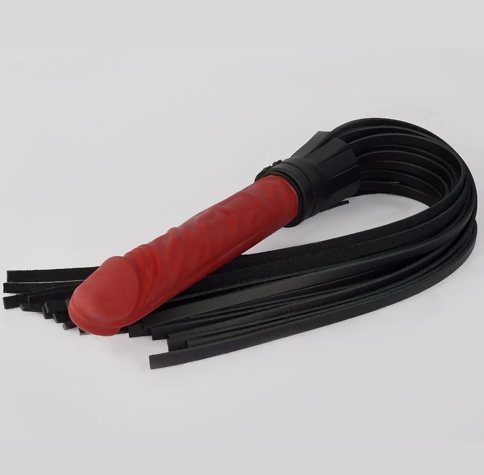 Черная плеть с красной ручкой-фаллоимитатором - 65 см.