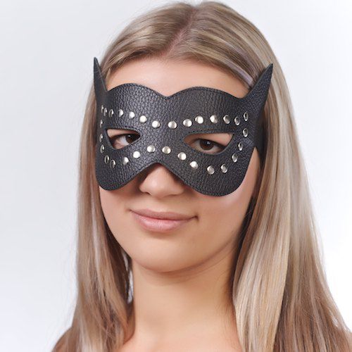 Черная двухслойная открытая кожаная маска заострённой формы