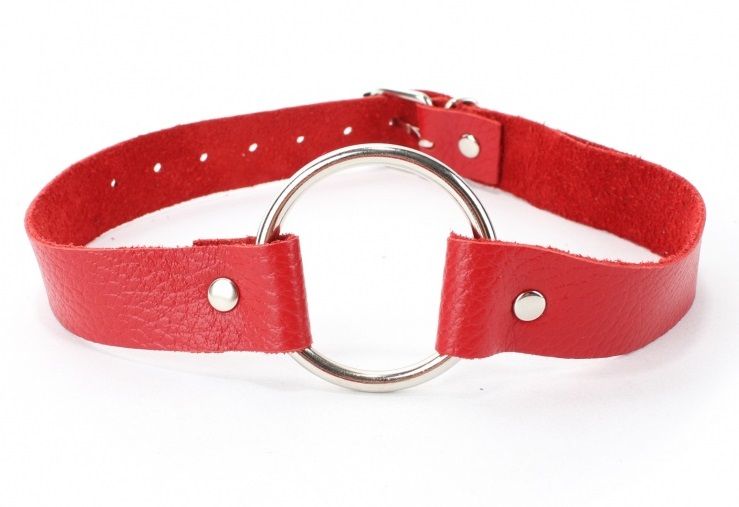Кляп выполнен из натуральной кожи высокого качества красного цвета. Кольцо из прочного метала закреплено ремнями. Размер регулируется пряжкой сзади, подойдет на обхват от 33 до 50 см. Надежный кляп для БДСМ игры. Диаметр кольца - 4,5 см. Ширина ремней - 2 см.