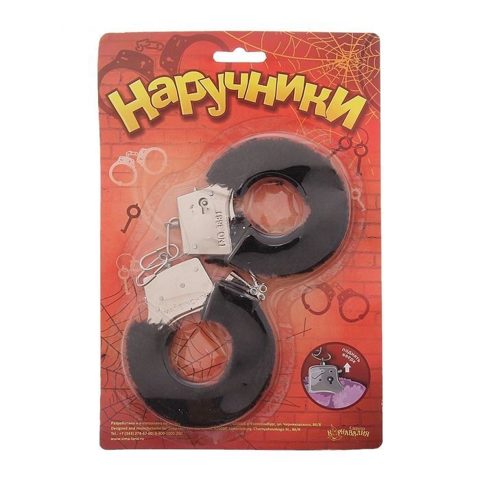 Металлические наручники с черной плюшевой отделкой.