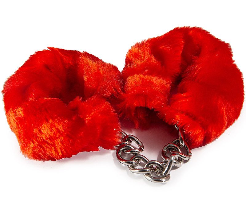 Наручники на металлической регулируемой сцепке. Декорированы в нежный искусственный мех для более комфортного использования. Размер регулируется карабином.