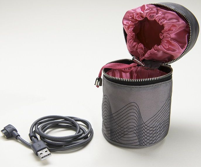 Внутри сумочки имеются два отсека: с вентиляционными отверстиями для Revel Body и с застёжкой-лентой для USB-шнура. Последний поставляется в комплекте с сумочкой и позволит не брать с собой станцию для зарядки любимой секс-игрушки.