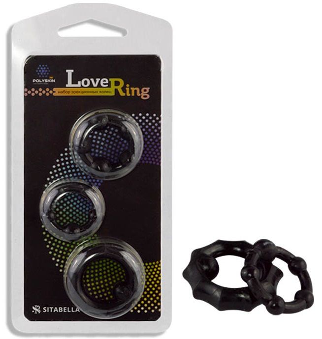 Набор из 3 черных рельефных эрекционных колец